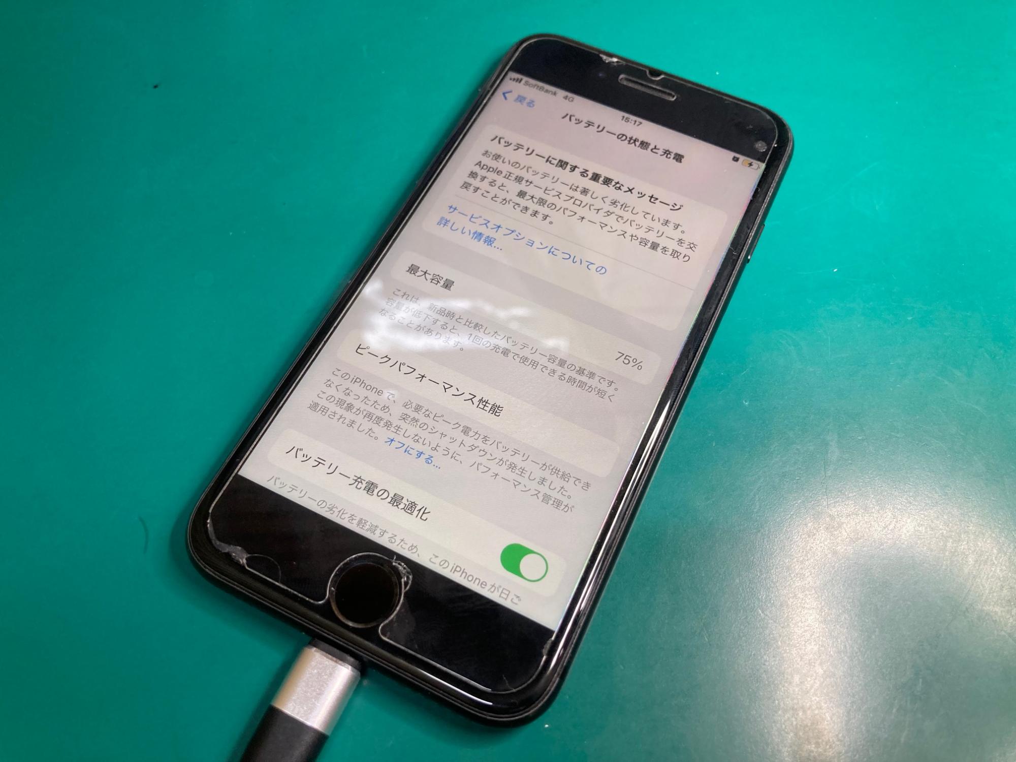 交換後は最大容量も回復し、お客様ご使用の充電ケーブルでも正常に充電でき、動作も安定しています。