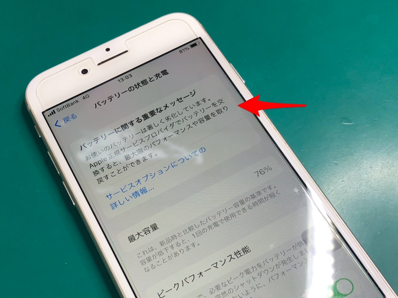 最大容量は70%台まで低下しており、日常使用でもかなり不便を感じていらっしゃるとのことでした。
