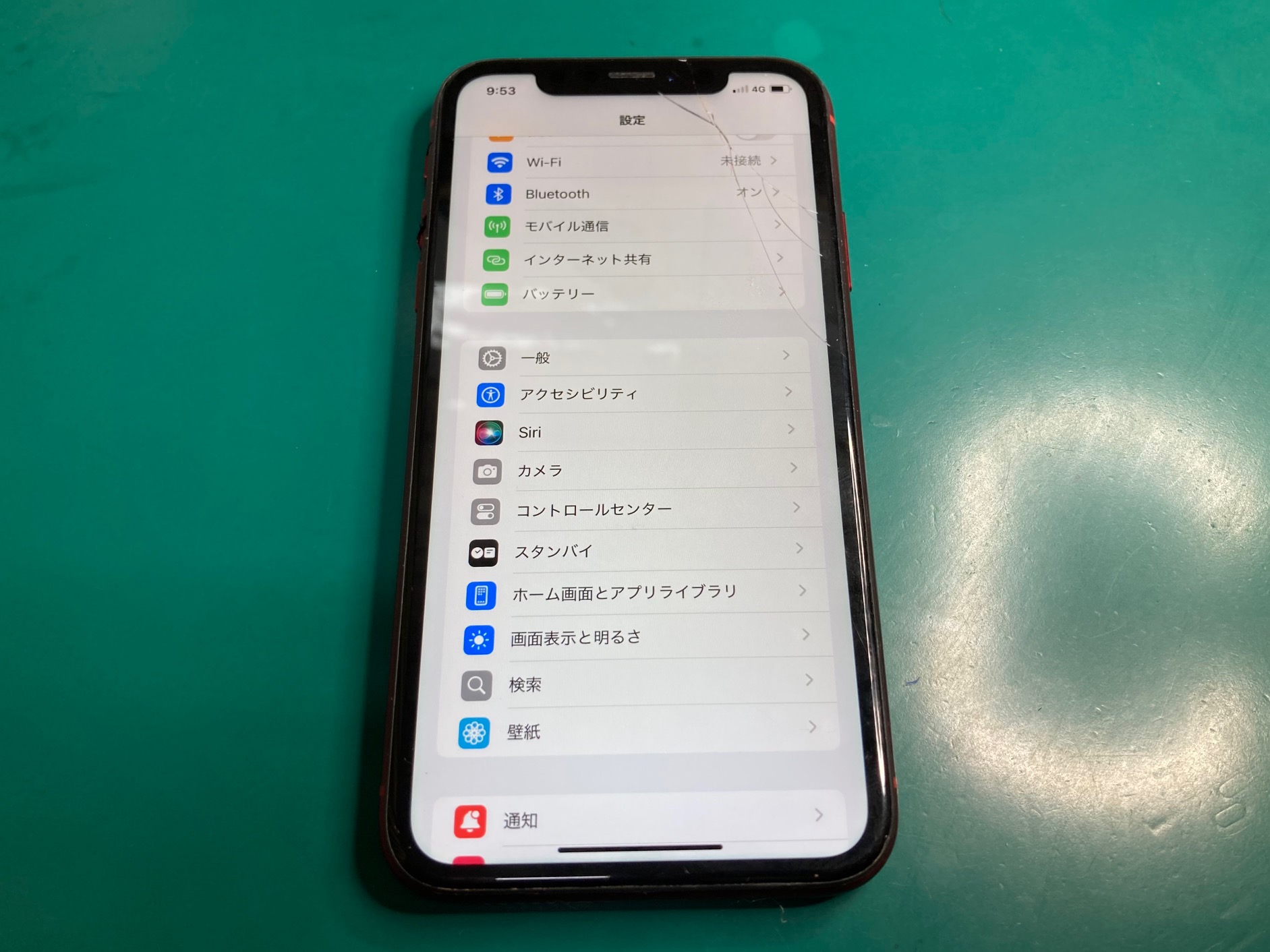 iPhone XRを落としてしまい、「右上からひびが入ってしまった」とのご相談をいただきました。