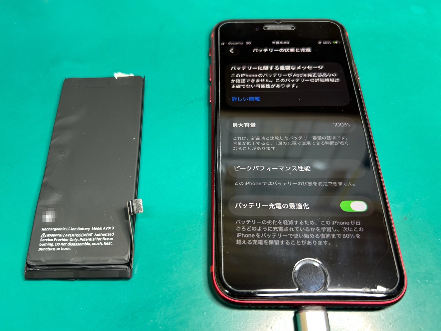 今回は、iPhone SE(第3世代)のバッテリー交換をご依頼いただきました。