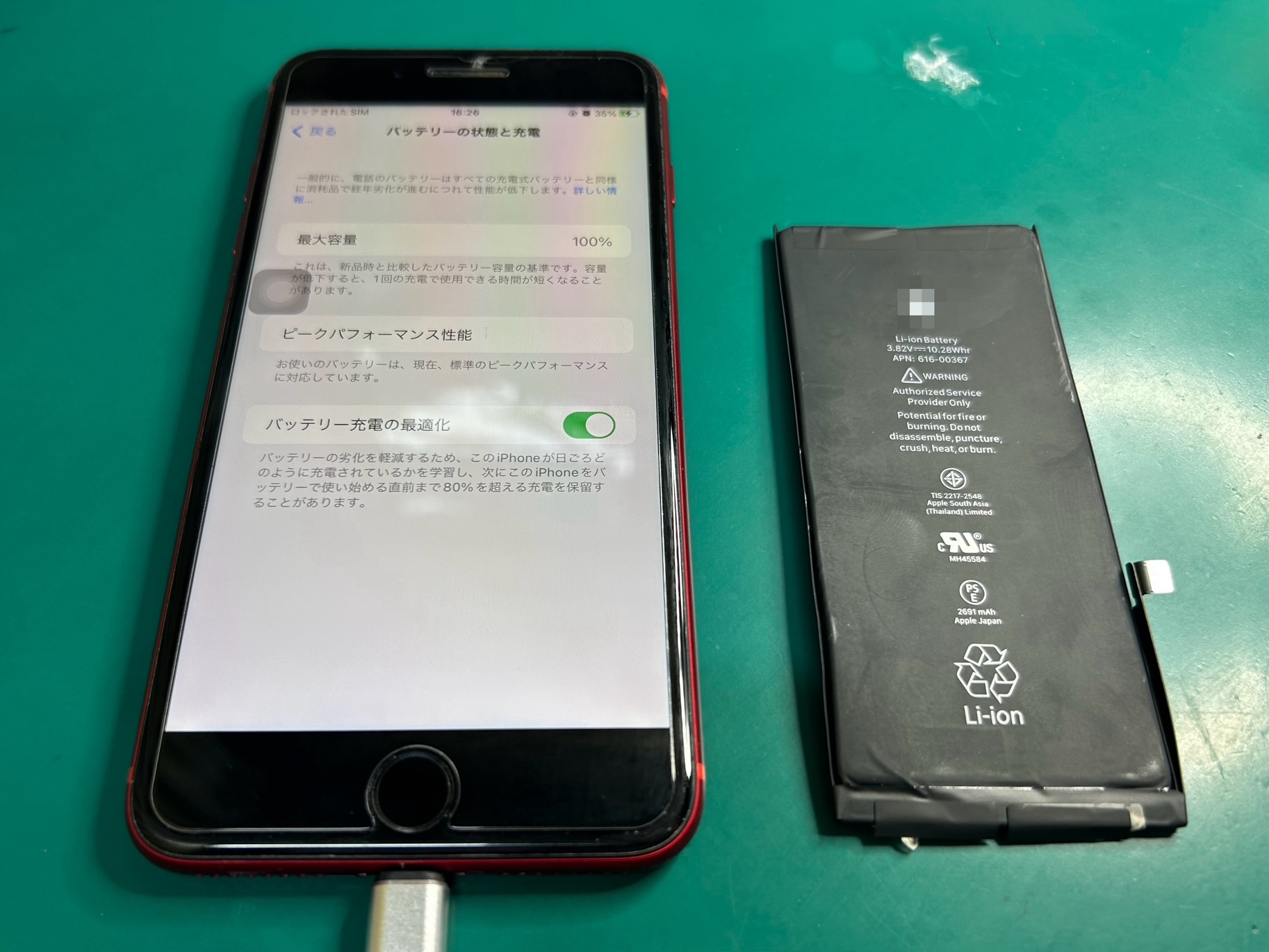 最大容量が68%まで低下したiPhone SE(第2世代)をお持ち込みいただきました。