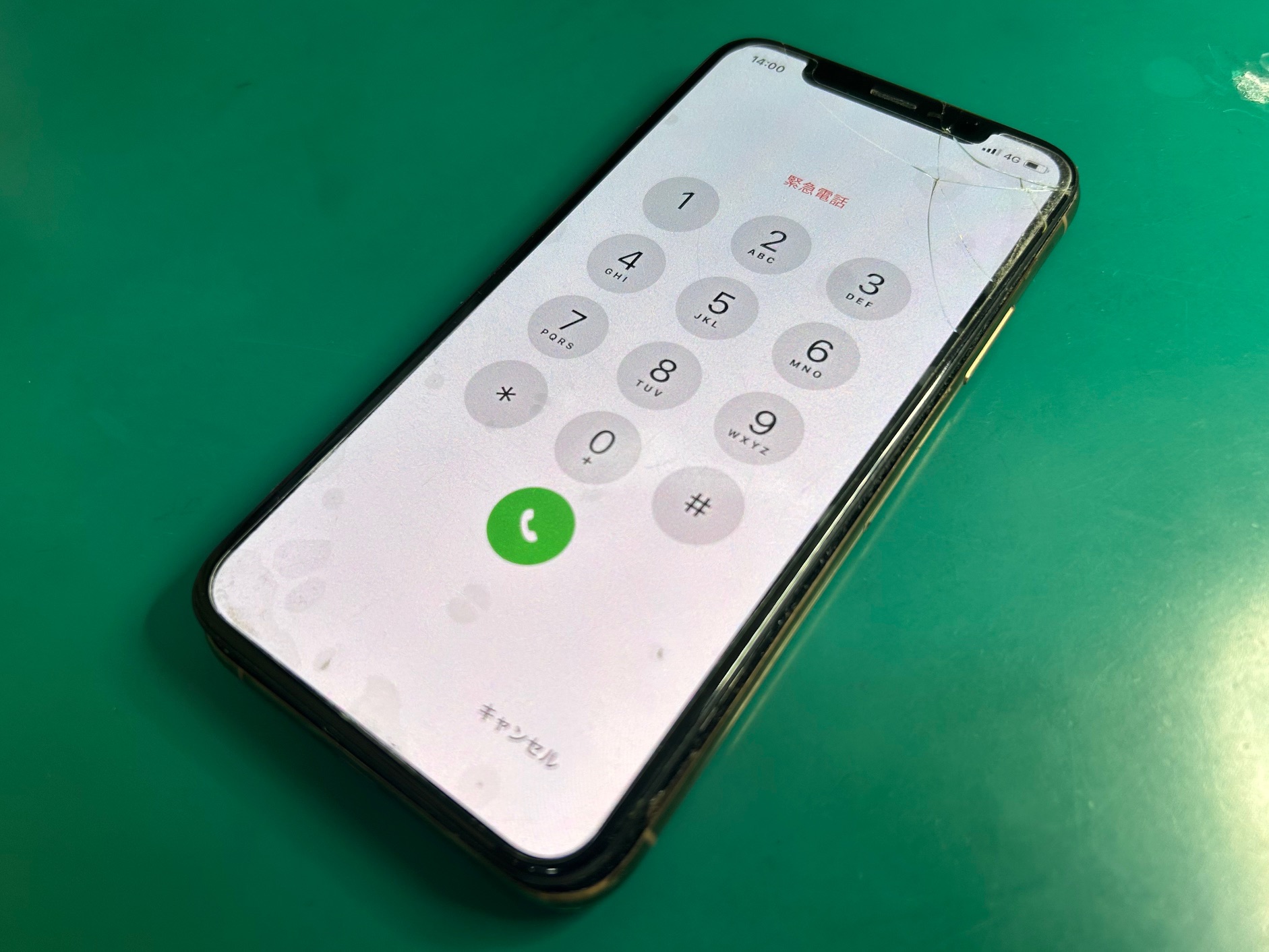 お持ち込みいただいたiPhone XSは、画面右上を中心にひび割れが広がっている状態でした。