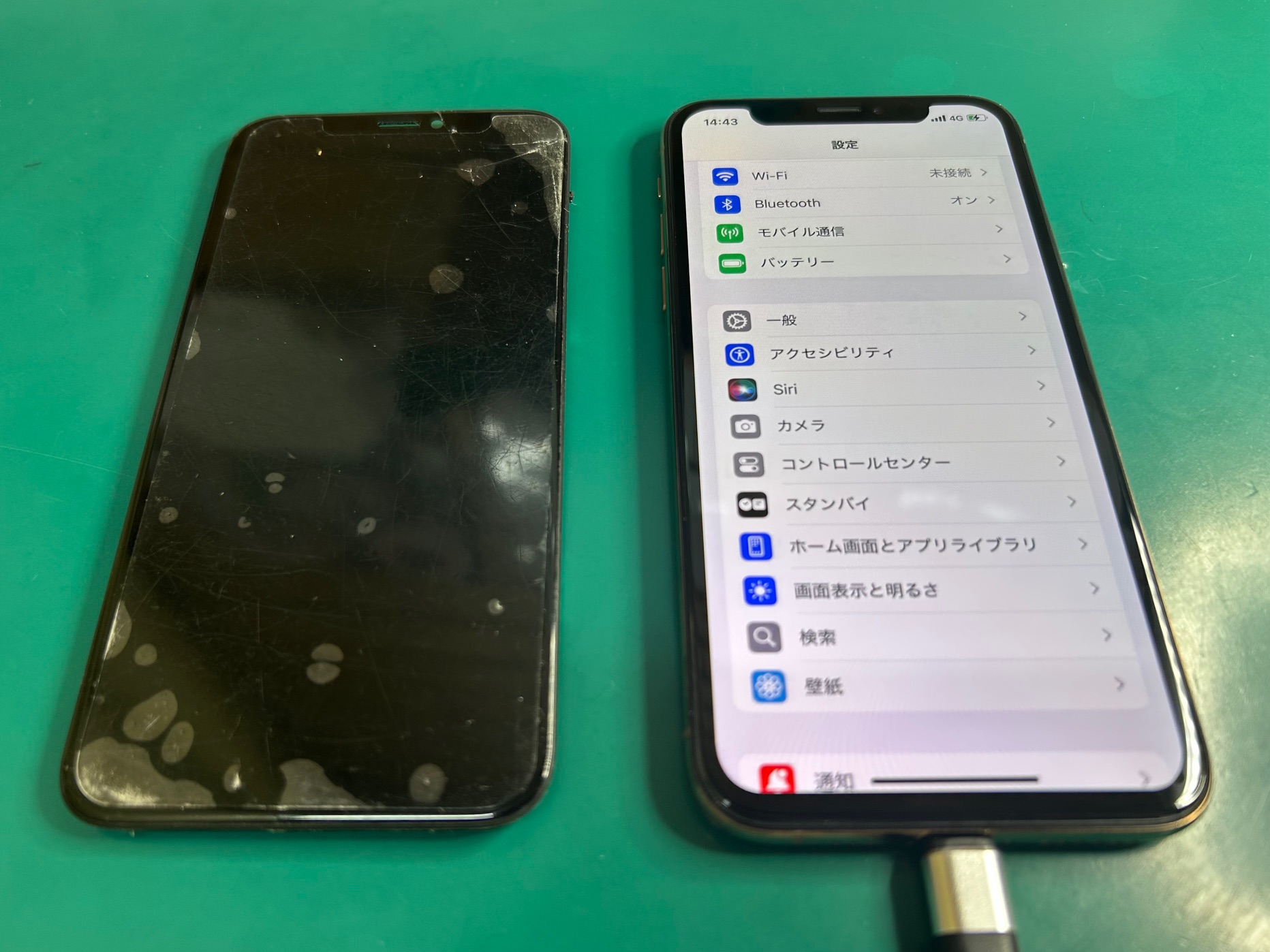 交換後は見た目もきれいに、表示やタッチセンサー、各種動作も問題なくご使用いただける状態になりました。