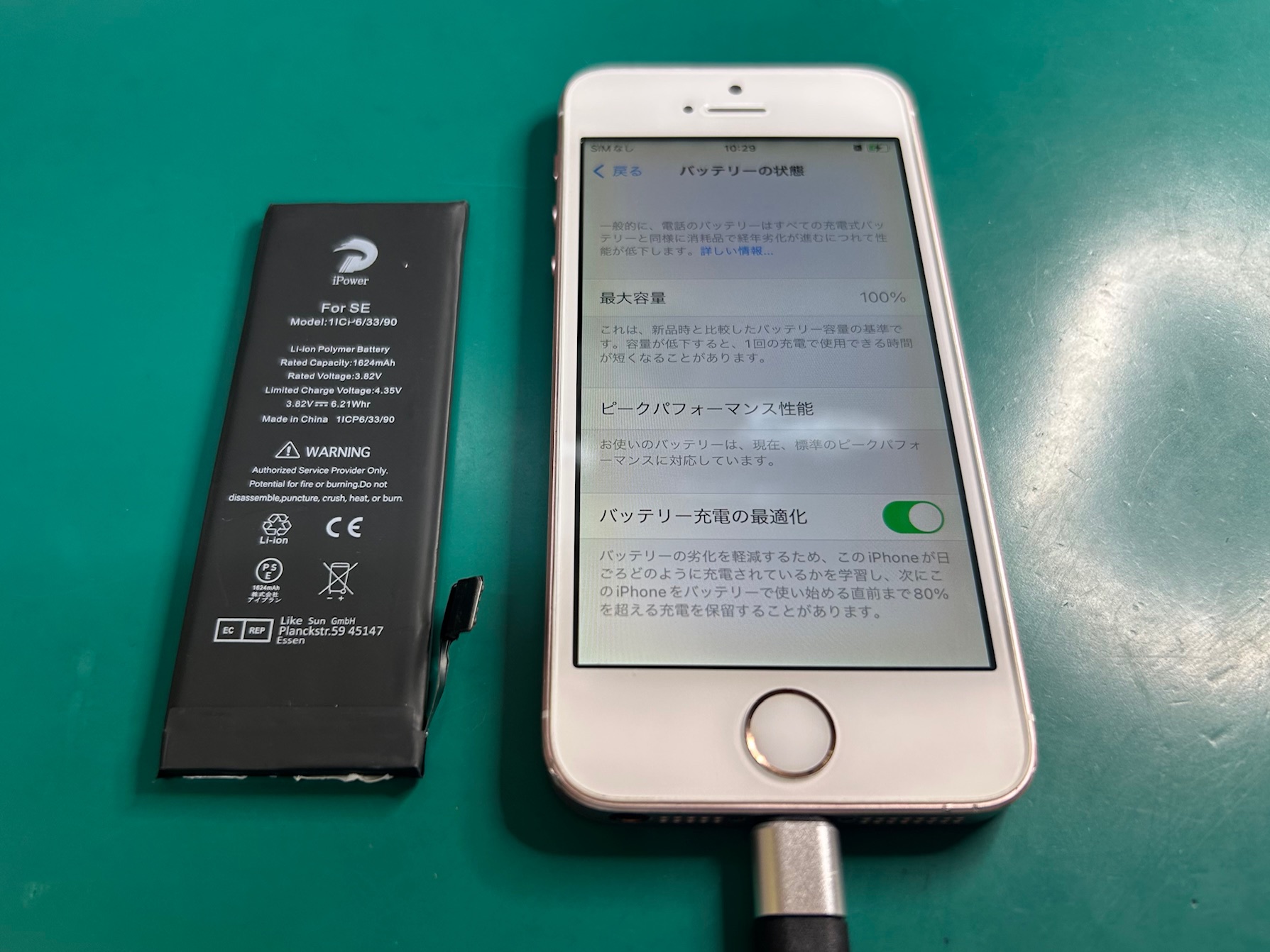 iPhone SE(第1世代)のバッテリー交換をご依頼いただきました。