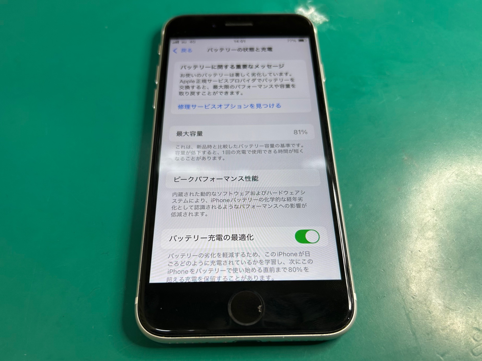 SE(第2世代)はもともとのバッテリー容量が控えめなため、最大容量が80%前後になると減りの早さを感じやすいです。