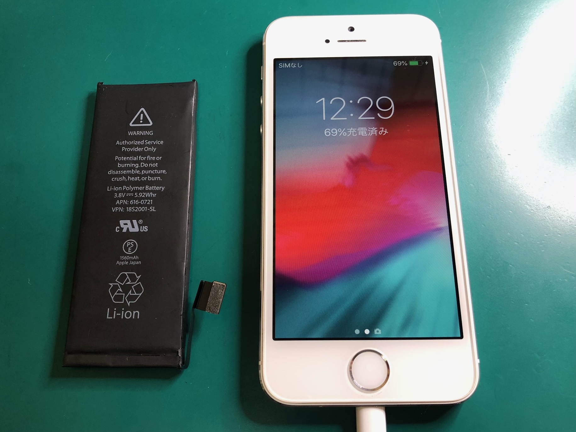 こちらはお預かりしたiPhone5sですが、「中古で購入したもののバッテリー残量の減りが早く、100%までフル充電が出来ない」とご相談をいただきました。