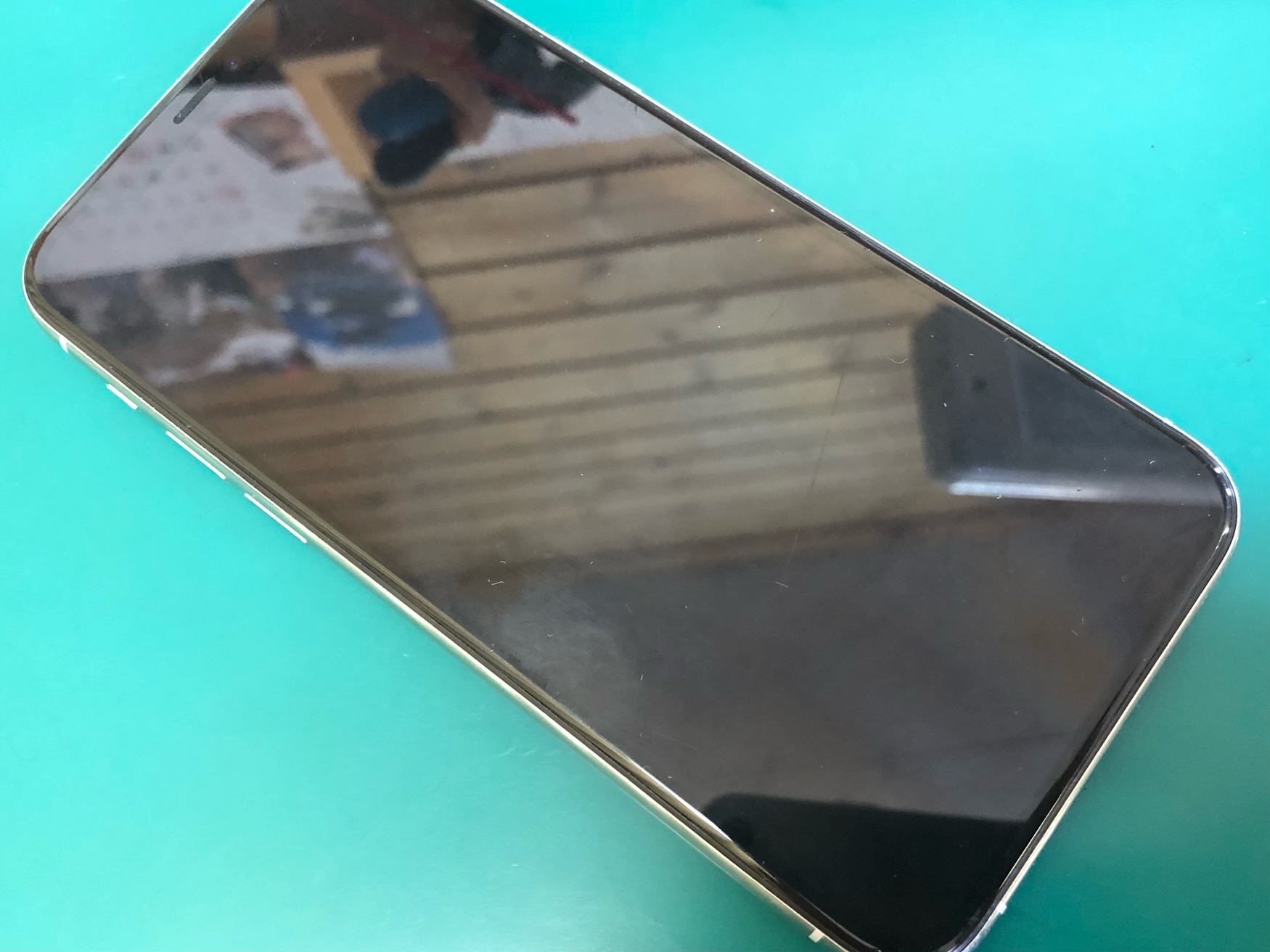 こちらはiPhone11Proですが、雨に濡れてからFace IDとイヤースピーカーの調子が悪く、解消しようとアップデートを試したところ、リンゴループになってしまったとご相談をいただきました。