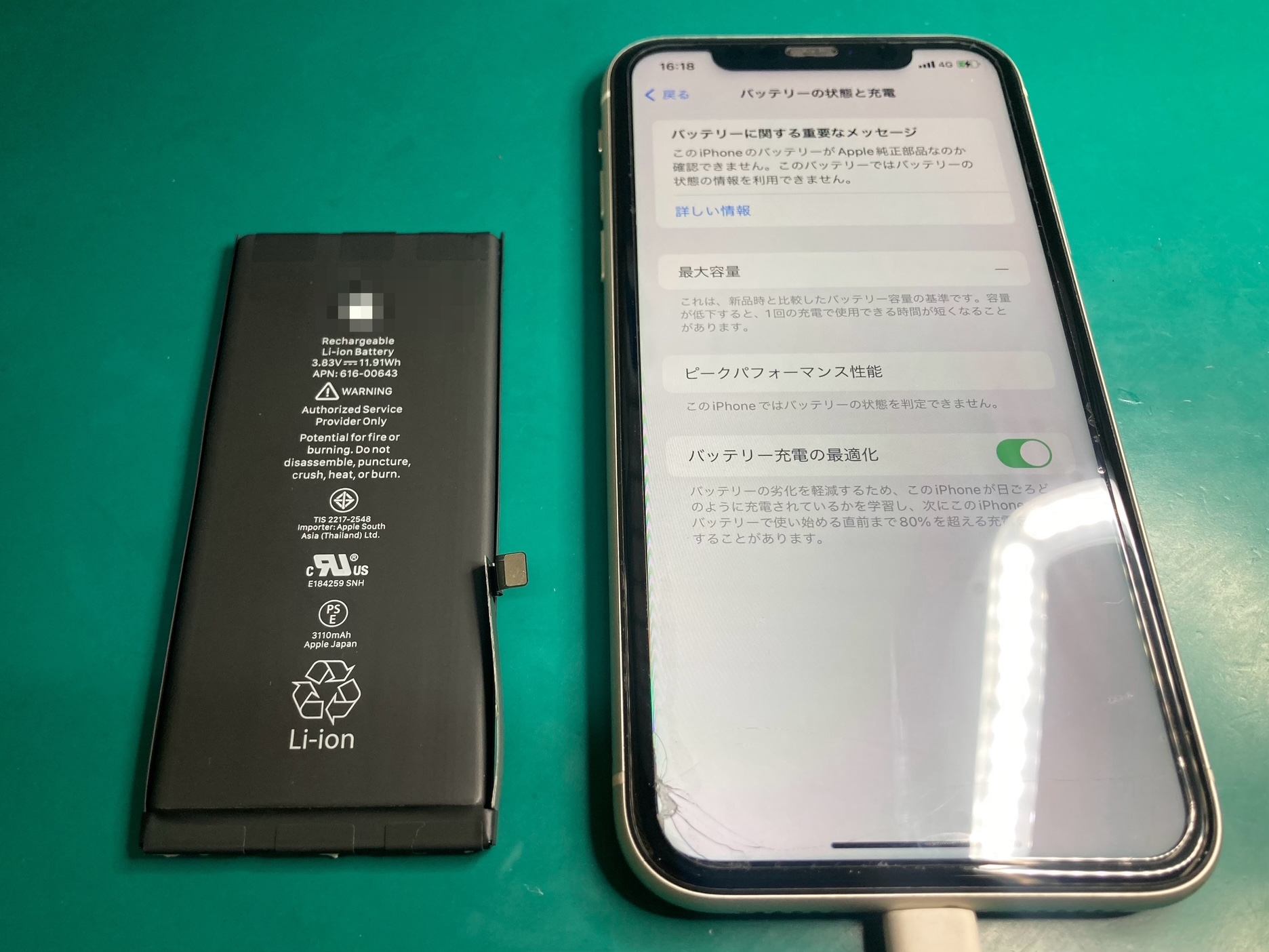 iPhone11をご使用のお客様から、バッテリー交換をご依頼いただきました。