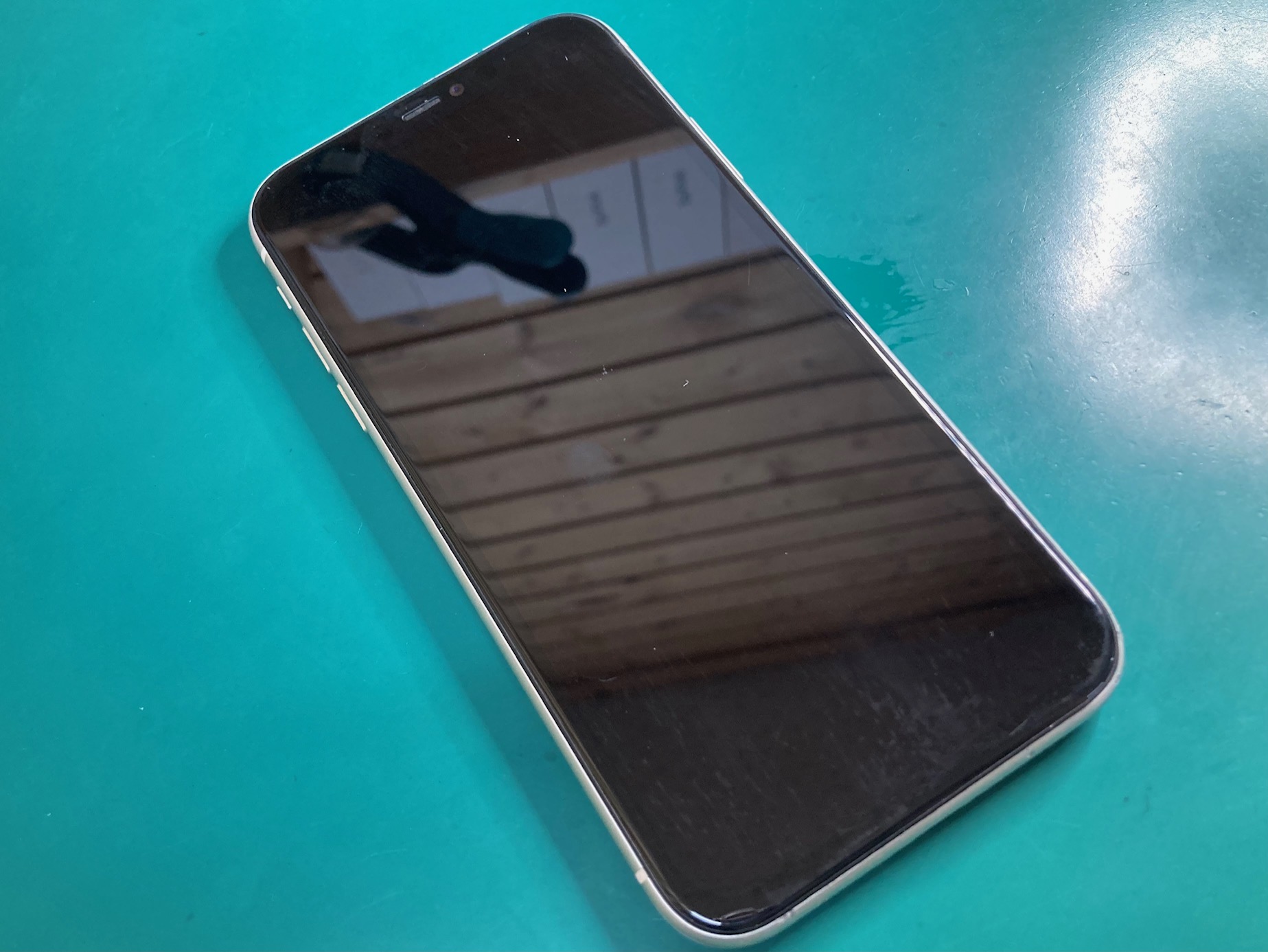 お預かりしたこちらのiPhone 11も、電源は入っている様子ですが画面が真っ暗で何も表示されません。時折、わずかに映ることがあるものの、すぐに消えてしまい、通常の使用ができませんでした。
