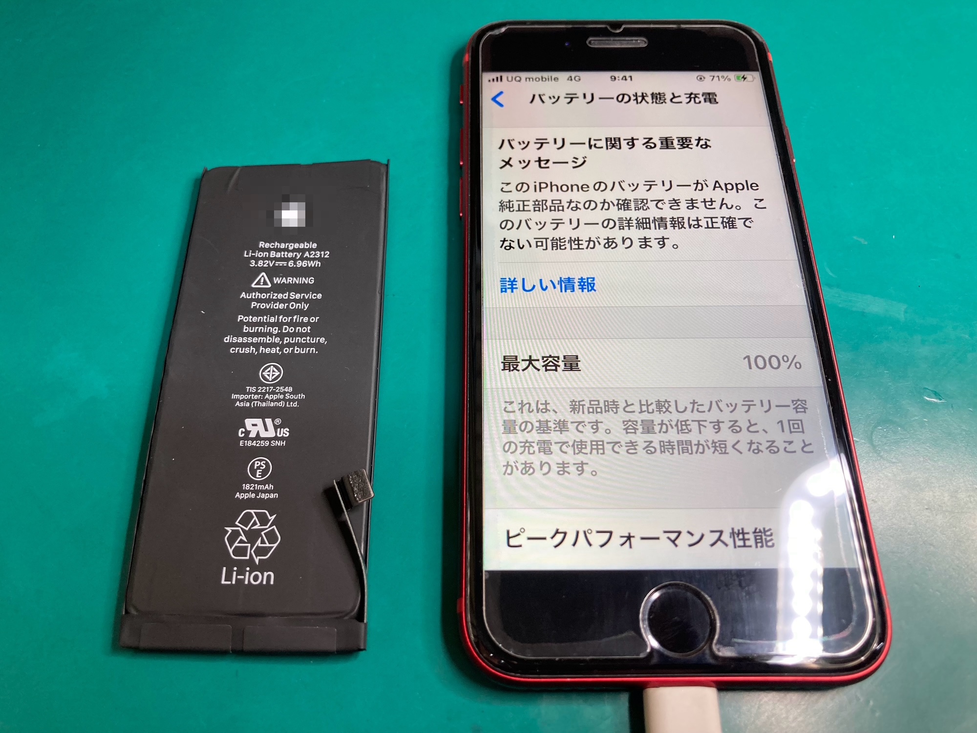 iPhoneSE(第2世代)をお使いのお客様より、バッテリー交換のご依頼をいただきました。