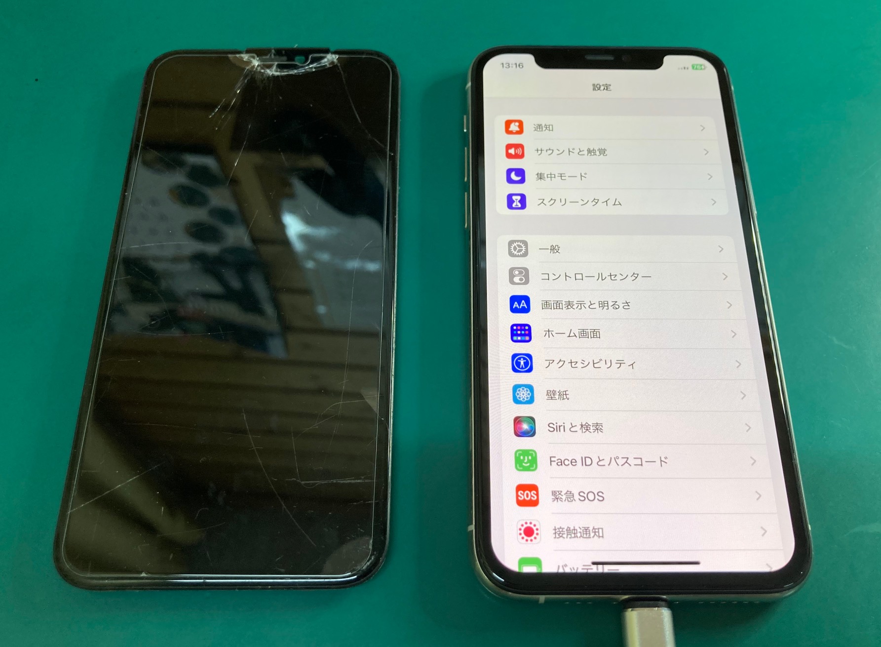 iPhone 11Proの画面割れでお持ち込みいただきました。