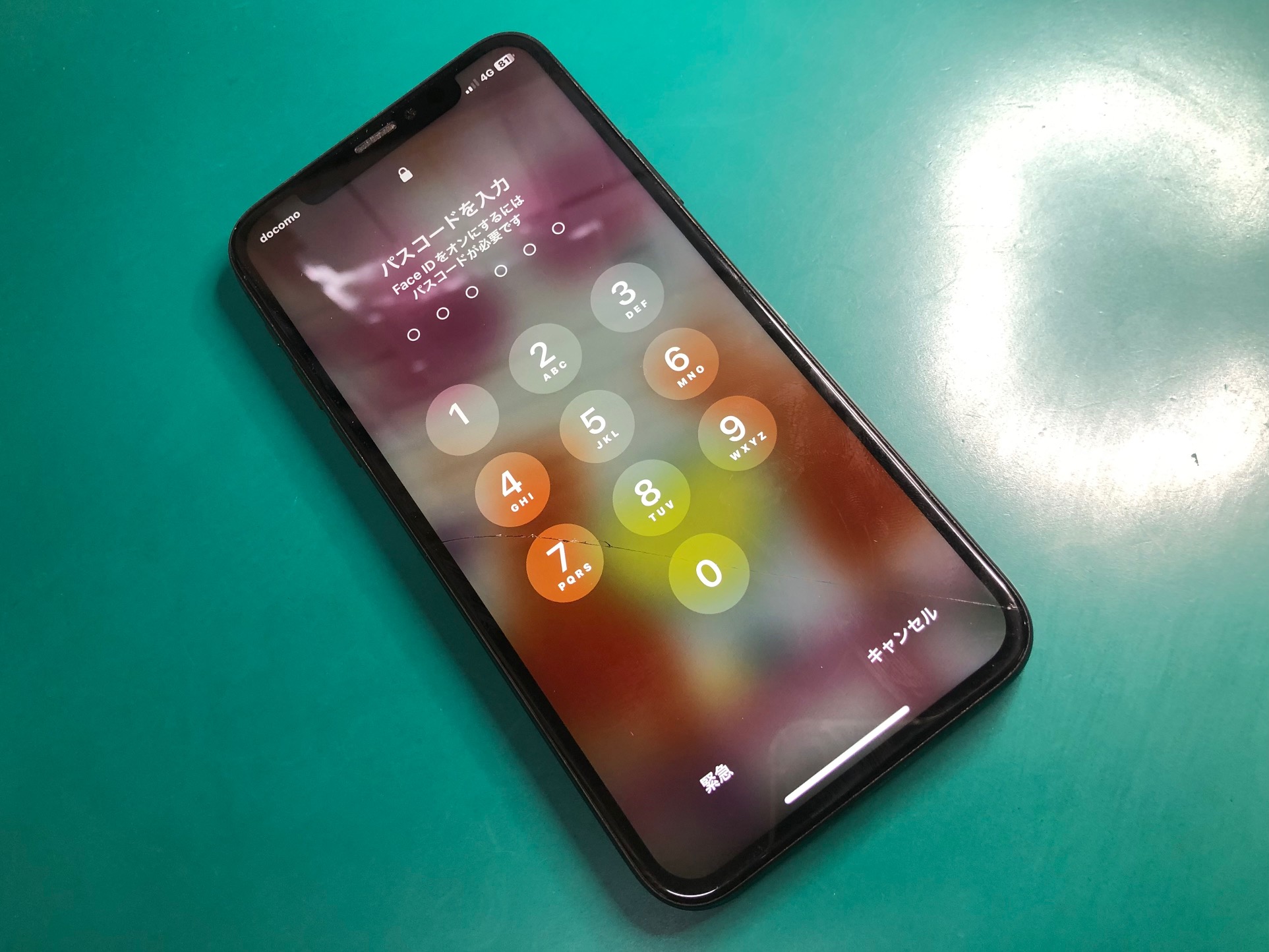 動作確認をしてみると、パスコード入力画面でもなかなか反応せず、この状態では操作がむずかしいですね。