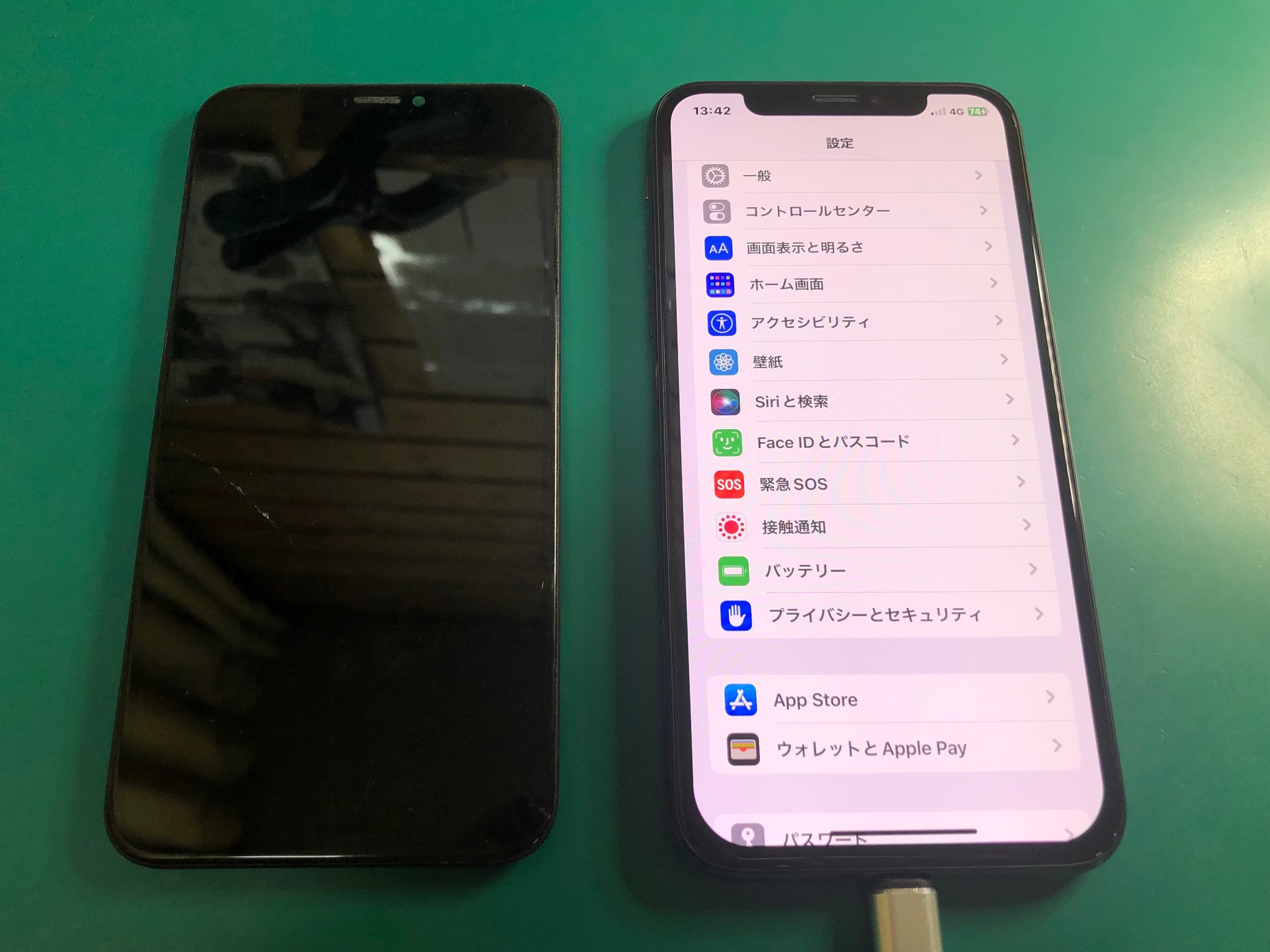 有機EL画面の交換後は、見た目もきれいになってタッチも快調に。