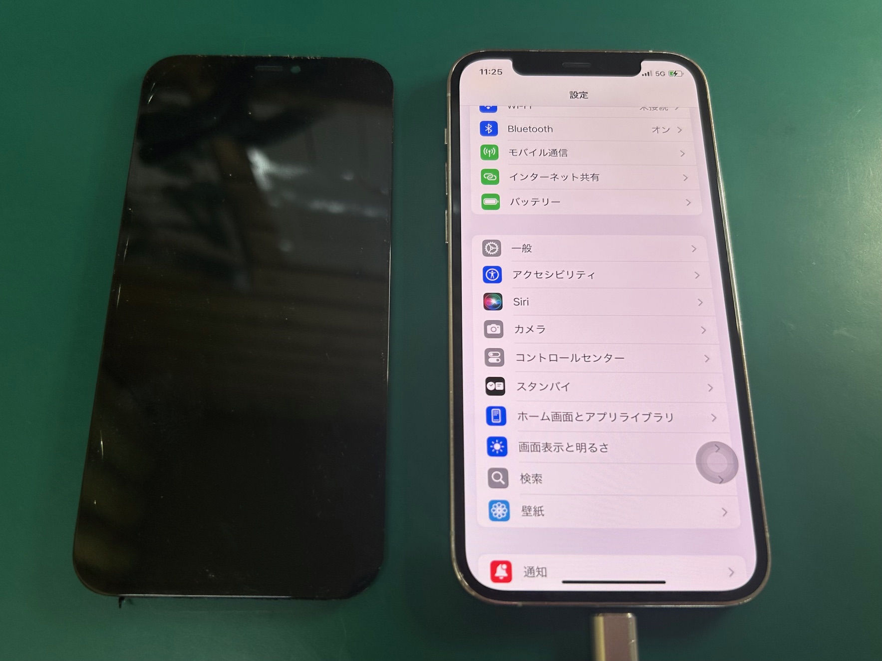 「電源は入るのに画面が真っ暗で映らない」というiPhone 12をお預かりしました。