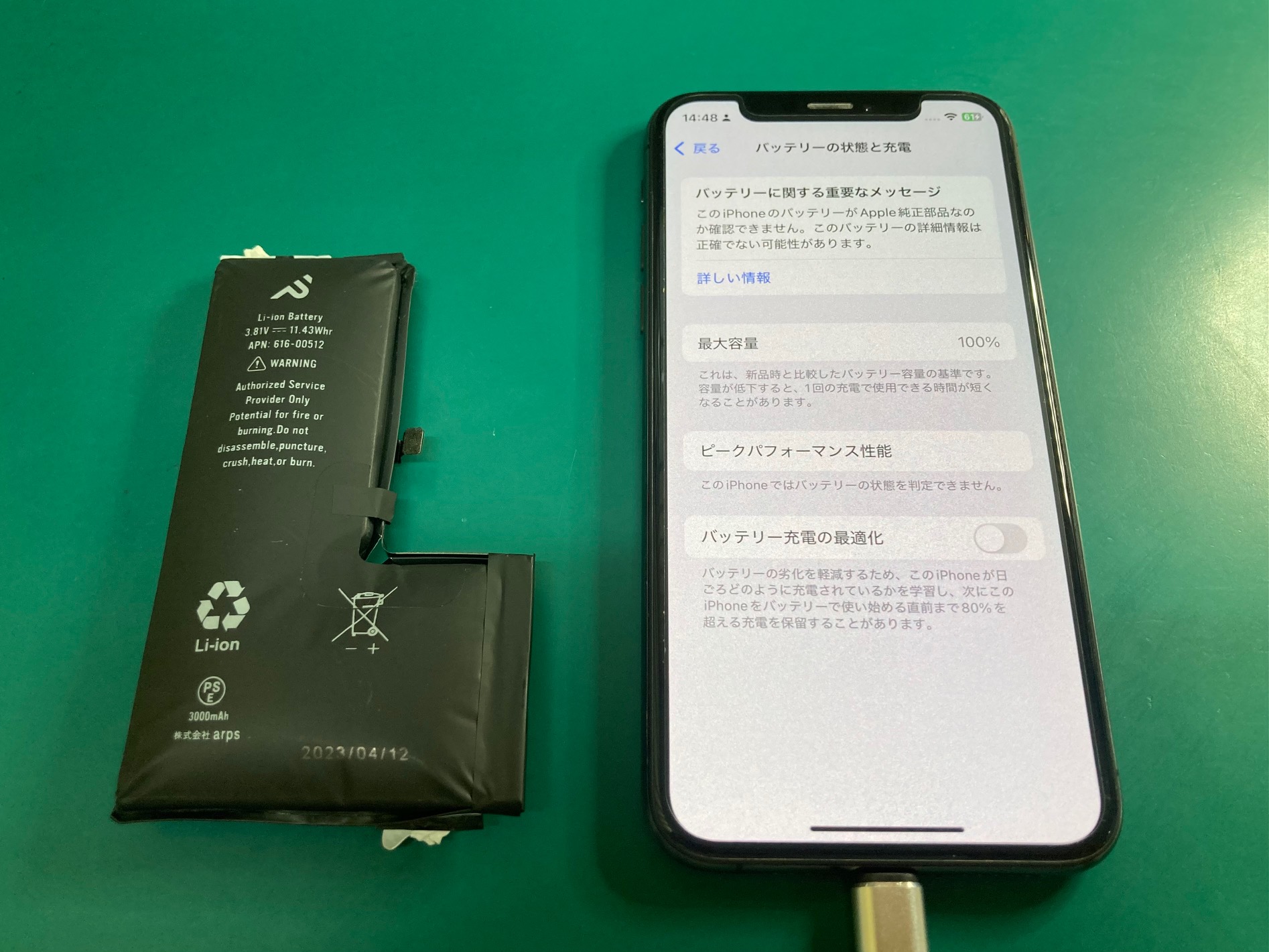 バッテリーが膨張して画面が浮き上がったiPhone Xsをお持ち込みいただきました。