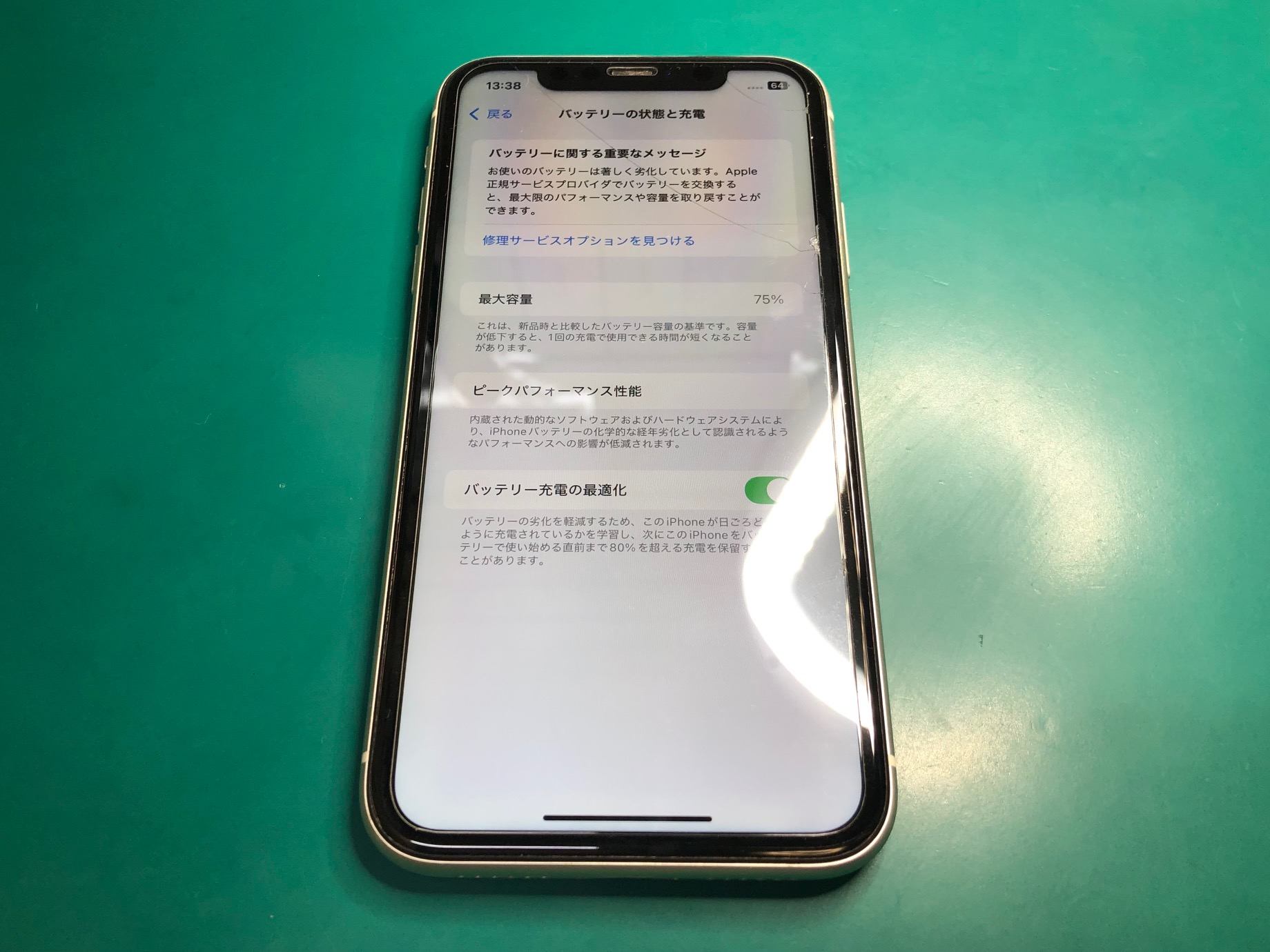 作業時間はおよそ60分で、交換後は最大容量100%に回復しました。