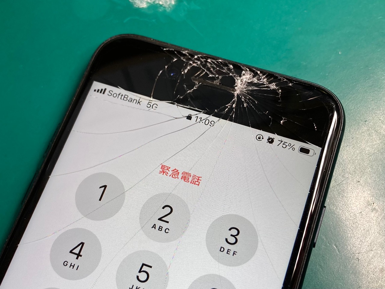 転んだ拍子に画面上部が大きく割れてしまったiPhone SE(第3世代)をお預かりしました。