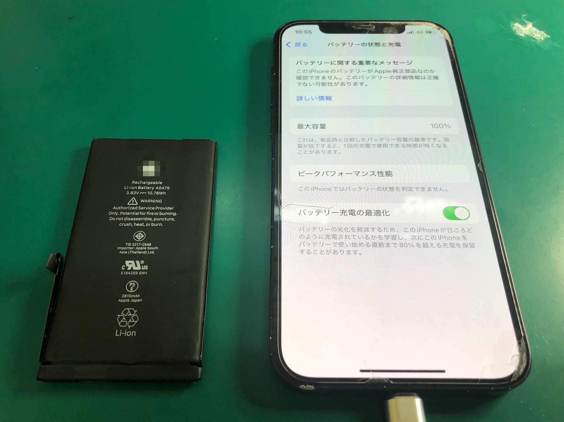 バッテリーの減りが早くなったiPhone 12をお預かりしました。