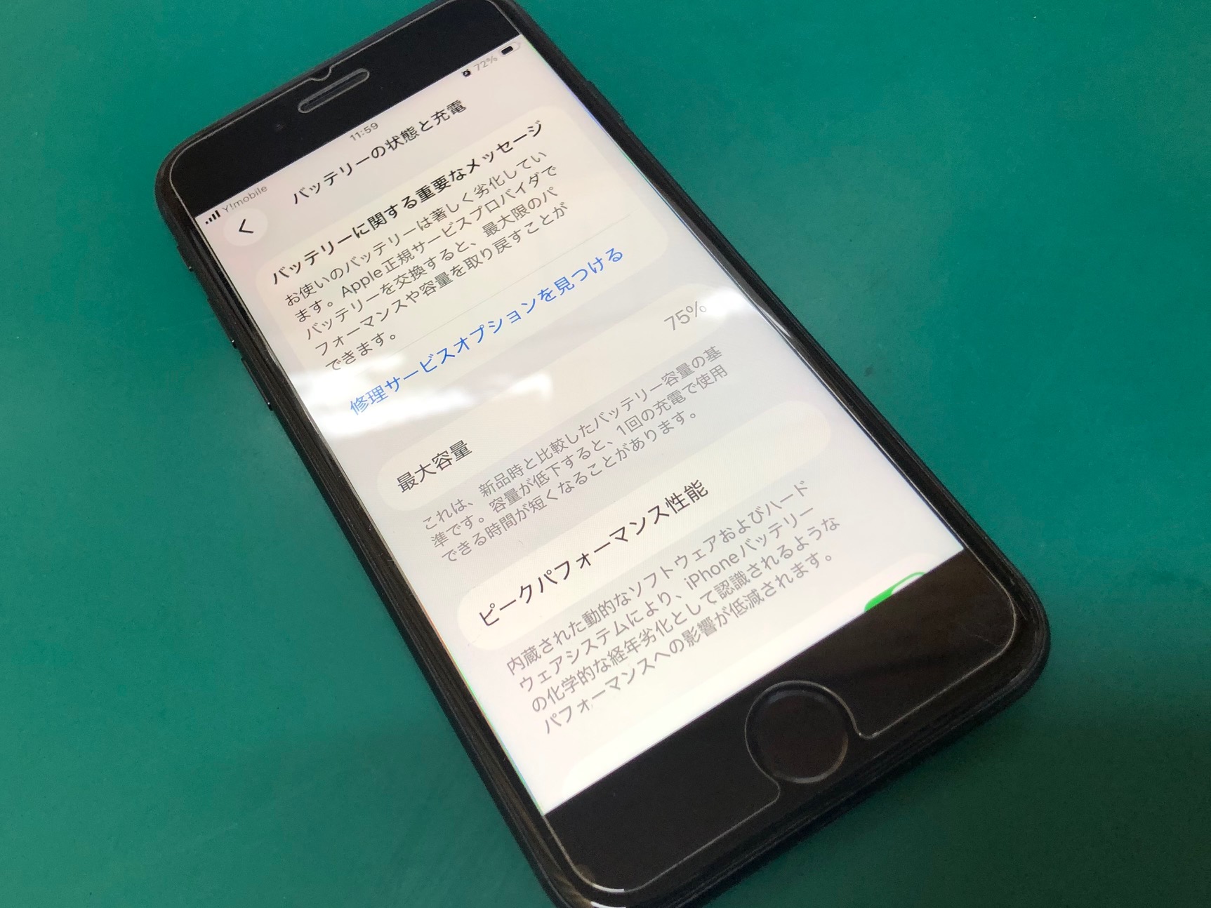 iPhone SE(第3世代)のバッテリー交換をご依頼いただきました。