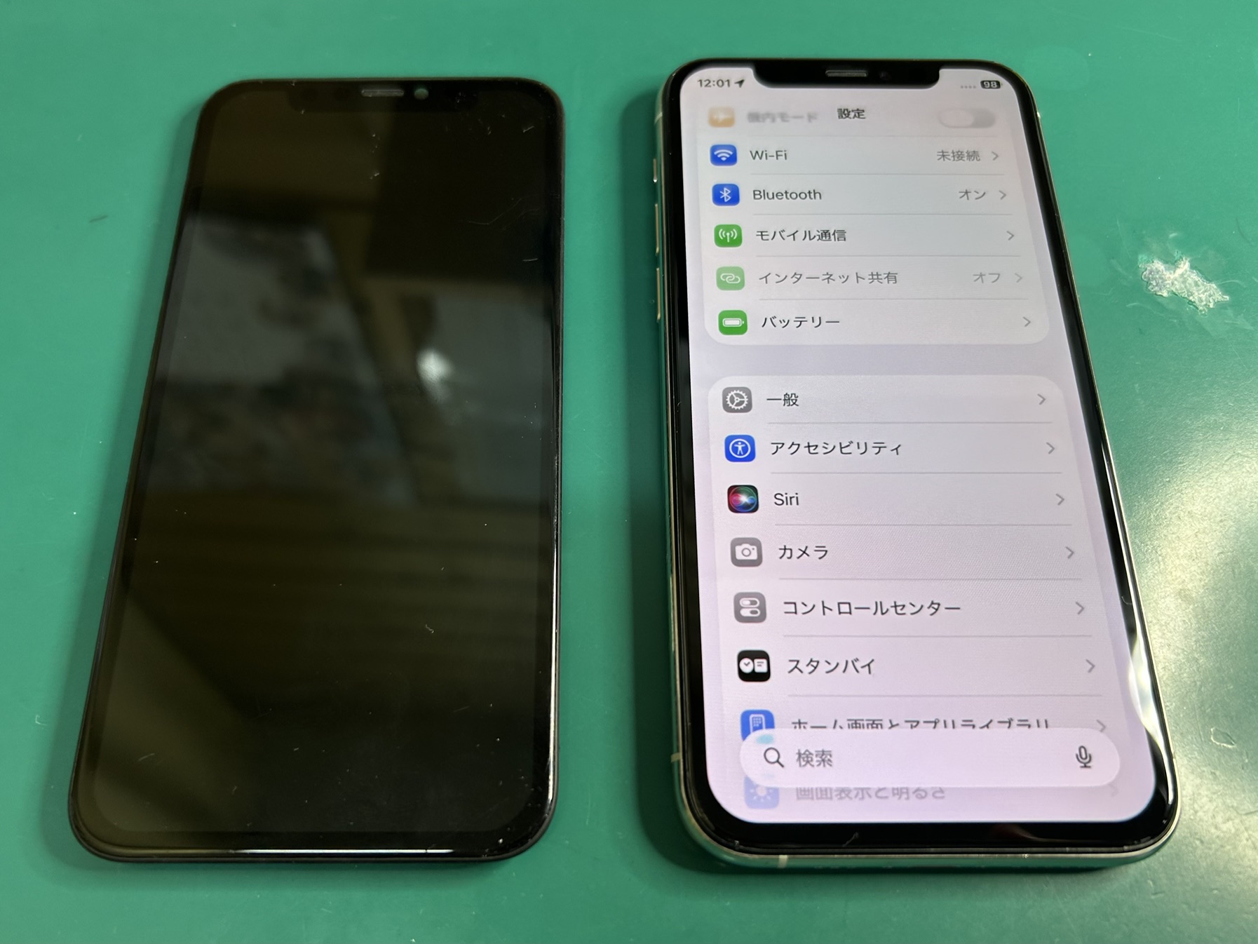 残念ながら、Face ID(顔認証機能)は水没により機能しなくなっていましたが、その他の基本的な操作には問題ありません。