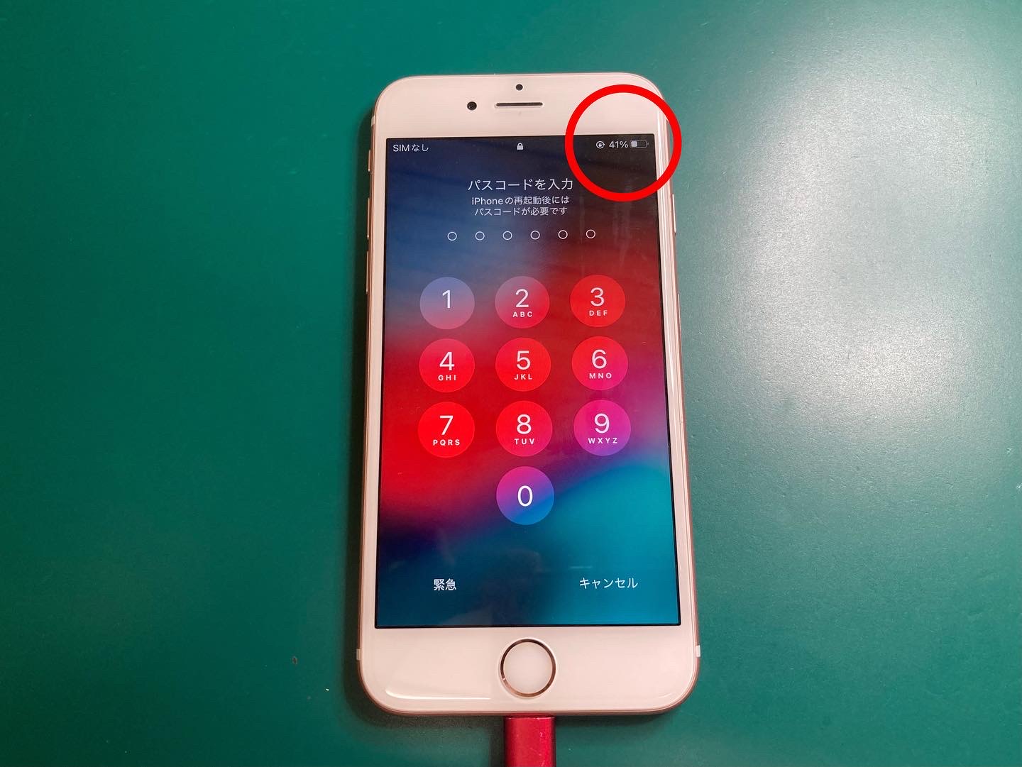 充電コネクタ修理完了後、iPhoneを充電ケーブルに接続し動作確認を行います。しっかり充電ができるようになりました。