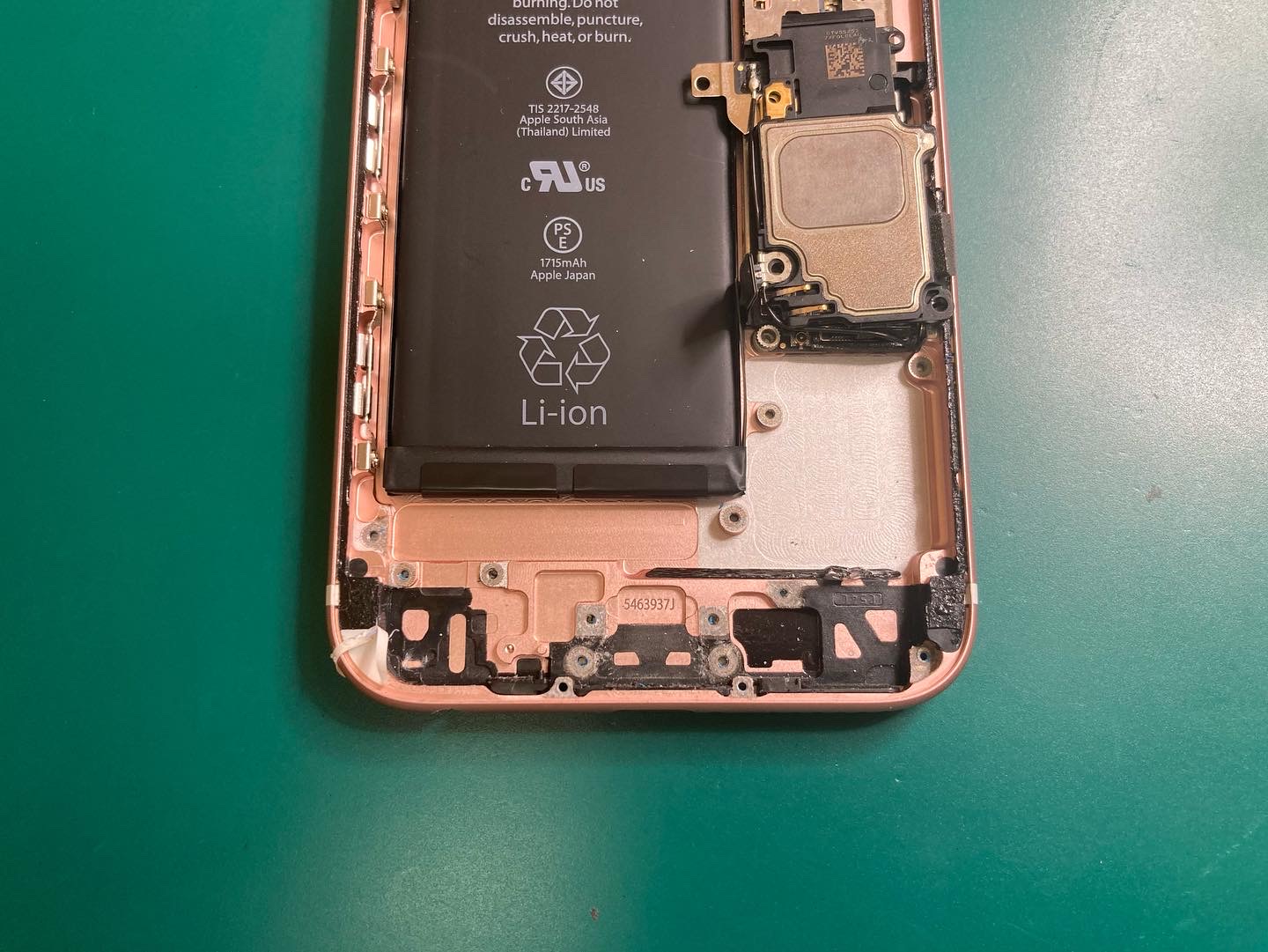 早速、充電コネクタ交換修理に取り掛かります。充電コネクタのパーツを取り外し、新しいパーツに交換します。充電コネクタはiPhone本体の底部にあるためスピーカーやバイブレーションも同時に取り外す必要があります。