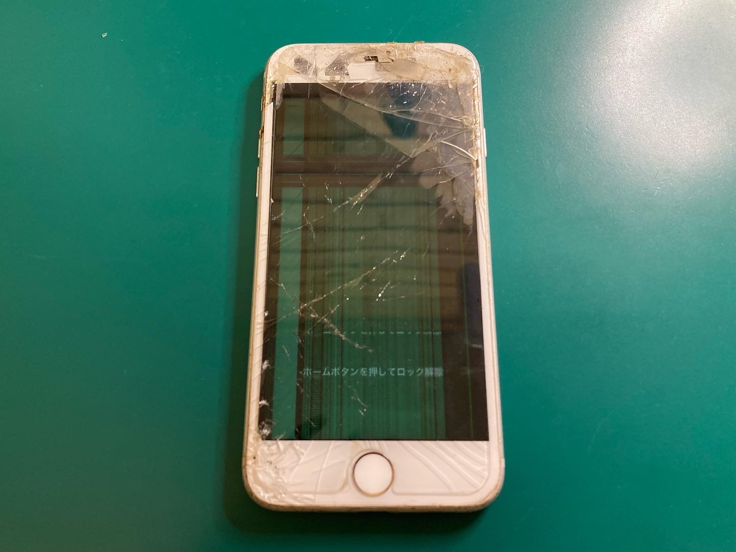 損傷がひどく、部分的にガラス画面が剥げ落ちて、iPhone内部のパーツが丸見えになっています。