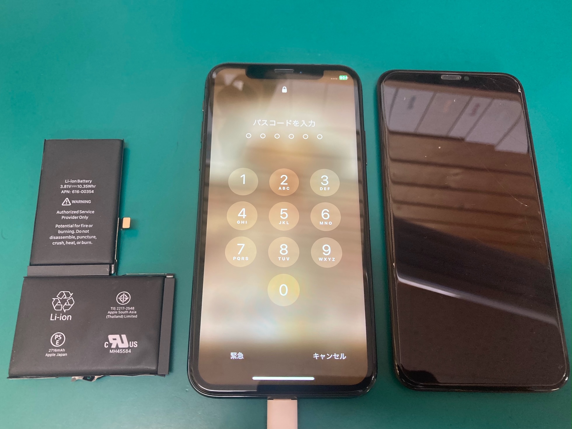 今回はフロントパネル交換修理によって解消することが出来、またバッテリー膨張が見受けられましたので、同時にバッテリー交換修理を承りました。