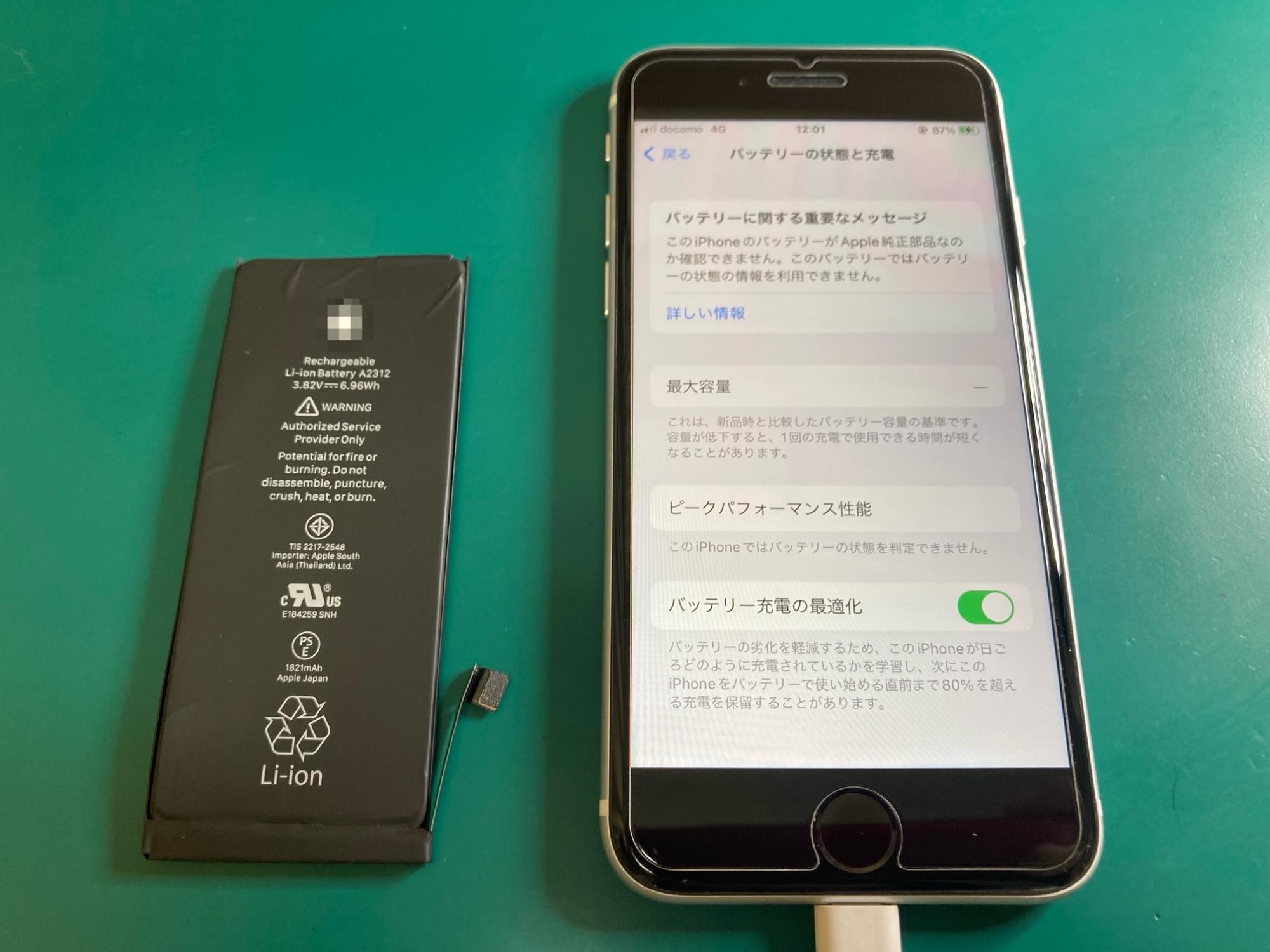 こちらは修理のご依頼をいただいたiPhoneSE(第2世代)ですが、2020年4月に登場し発売から4年目を迎えているモデルです。