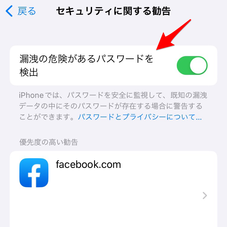 設定アプリから、漏洩の危険があるパスワードを検知する方法をご紹介いたしますので、下記の手順に従ってご確認ください。