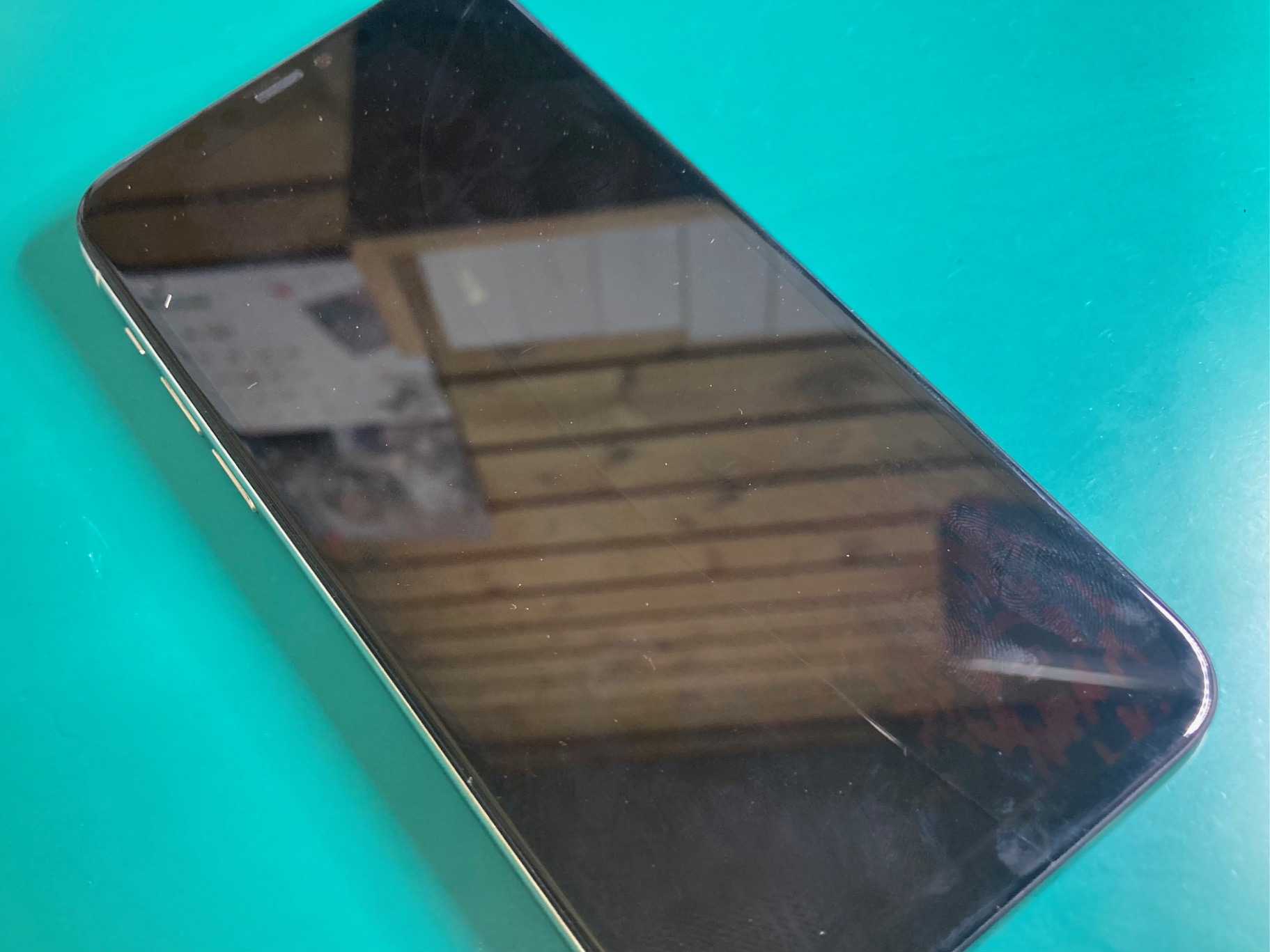 こちらはお客様よりお預かりしたiPhone11Proですが、画面割れ+バックライトが点灯しないため画面が薄暗い症状のご相談をいただきました。